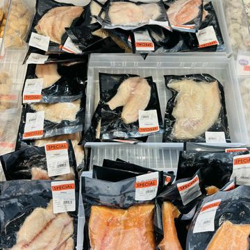 Variété de poisson entier et filets de poisson en liquidation à 25% de rabais.